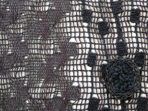 paper inclusions and applied crocheted dots