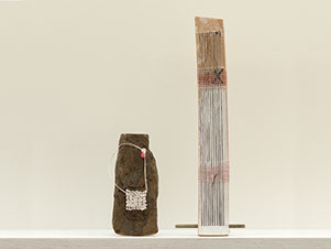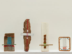 Found objects, moss, twisted papers, linen, cotton, polypropylene