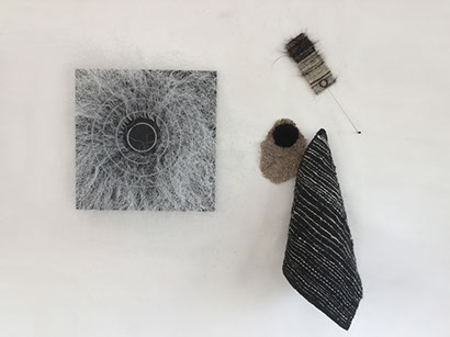 Linen, polypropylene, nettle, goat hair, acrylic sheet