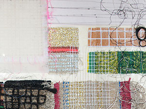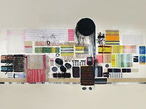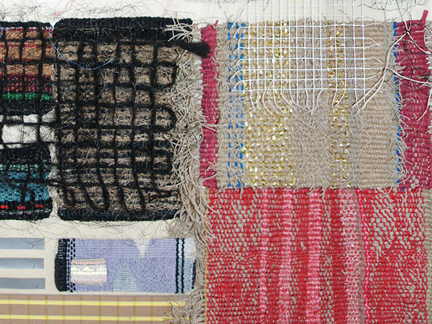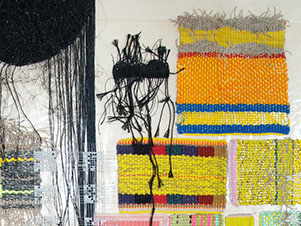 Wool paper, polypropylene, linen, cotton fibres on acrylic ground