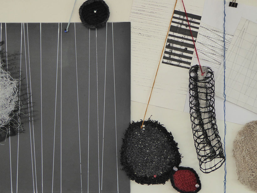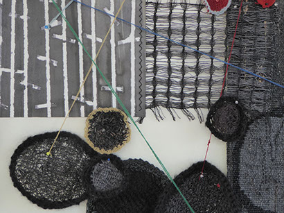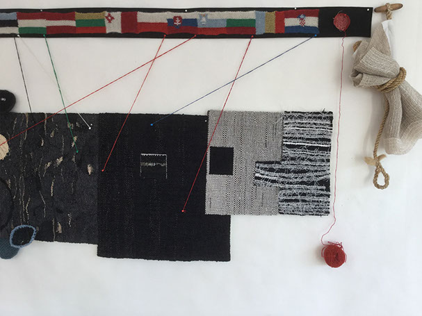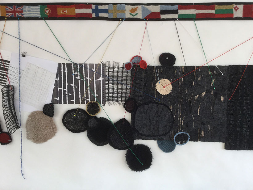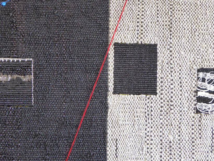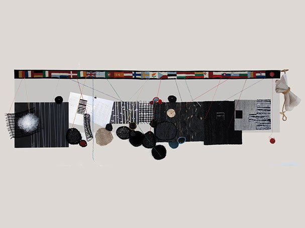 Wool, hand twisted plant fibres, linen, cotton and polypropylene