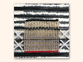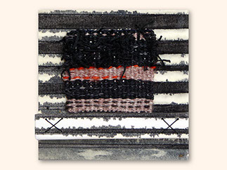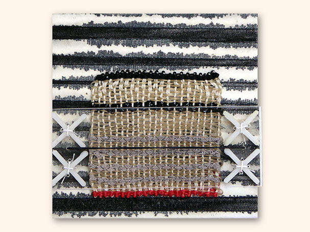 Cotton warp, cotton acrylic, linen and tape weft, acrylic sheet, wood and mesh