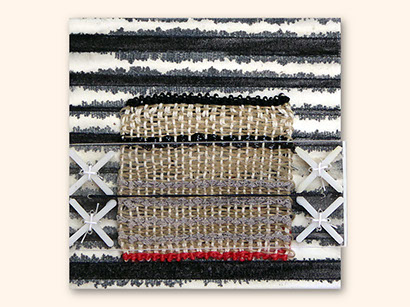 Polypropylene and cotton warp, plastic tape and acrylic weft, paper, tape, wax