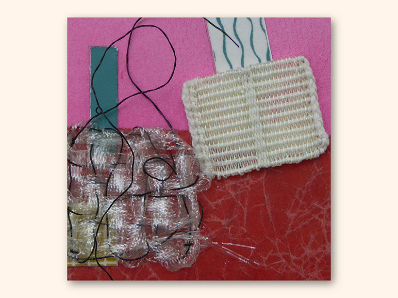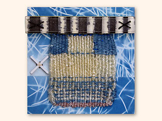 Hemp warp, cotton wool weft, paint, paper, acrylic sheet