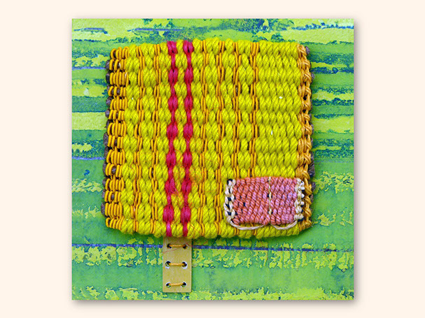 Cotton warp, acrylic, linen weft, wood, paper, acrylic sheet
